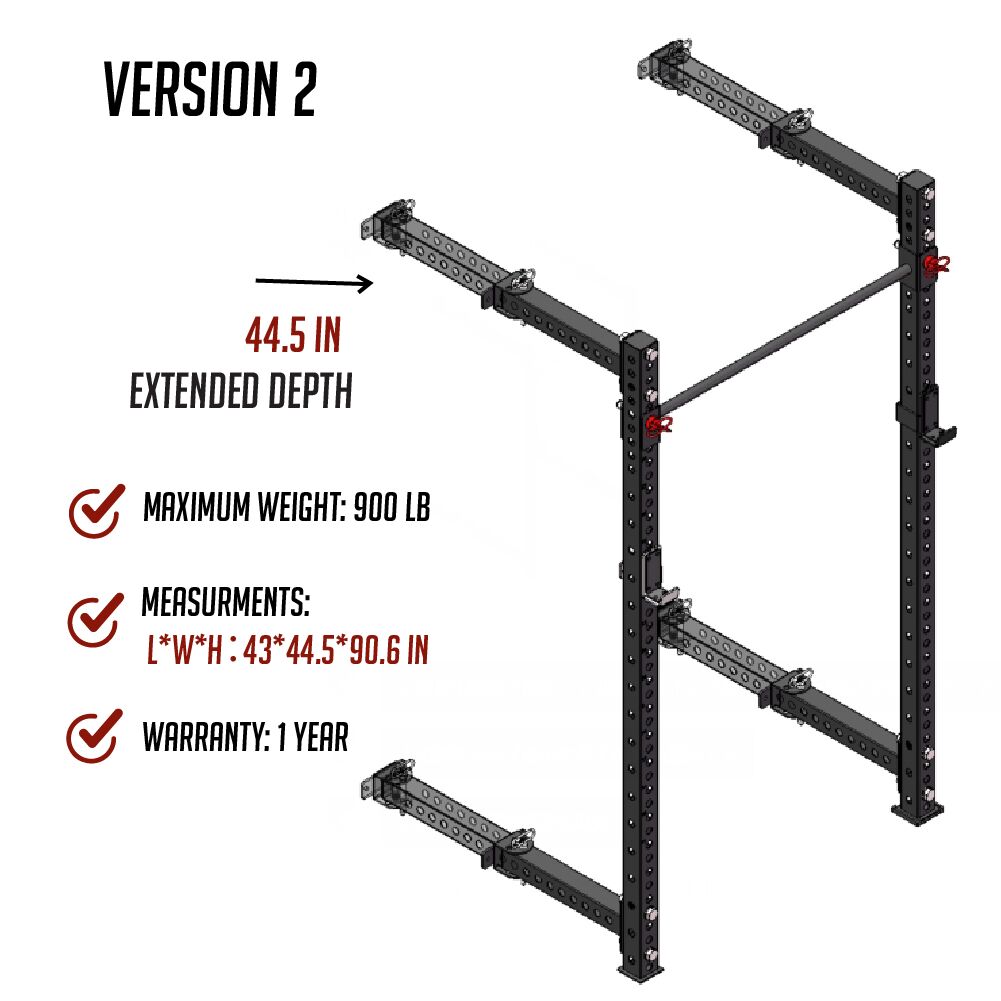 Introducing the Foldable Rack Version 2. This version offers enhanced flexibility and functionality, making it ideal for serious fitness enthusiasts.